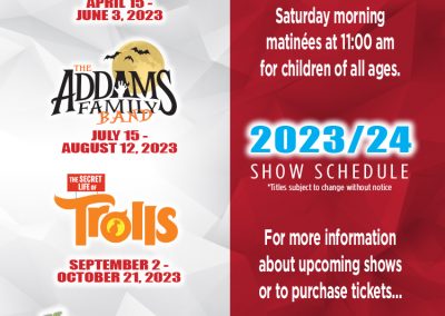 The first performance on April 22nd will highlight their production of “The Wedding Singer 1999” and their evening show experience. On Sunday April 23rd, they will be showcasing Jubilations Junior series with “Super Duper Mario Musical.”
