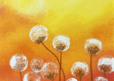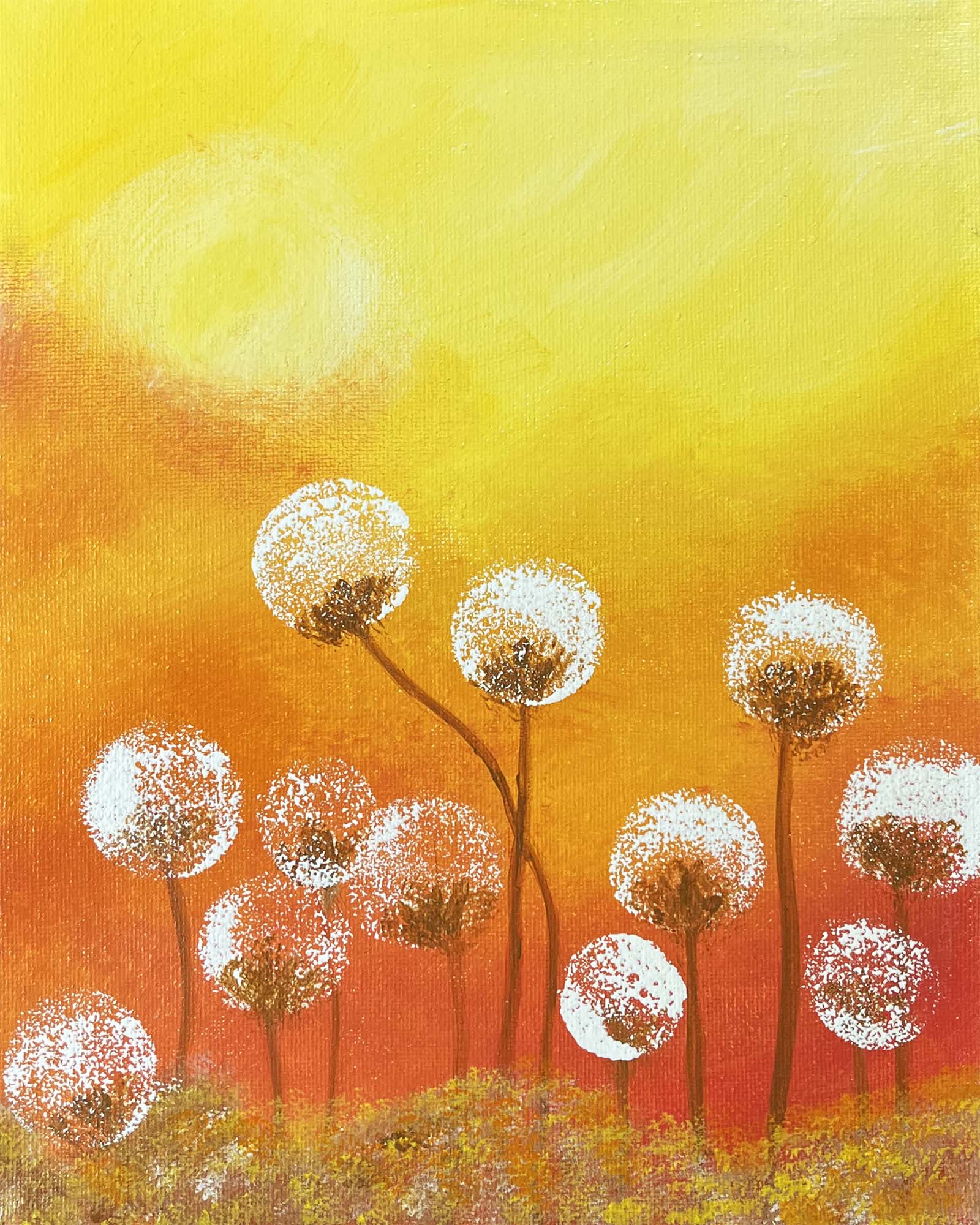 • “Dandy Dandelions” – A few unique tools help create this playful field of dandelions! This painting is guaranteed to have your friends asking, “How did you do that?!”
