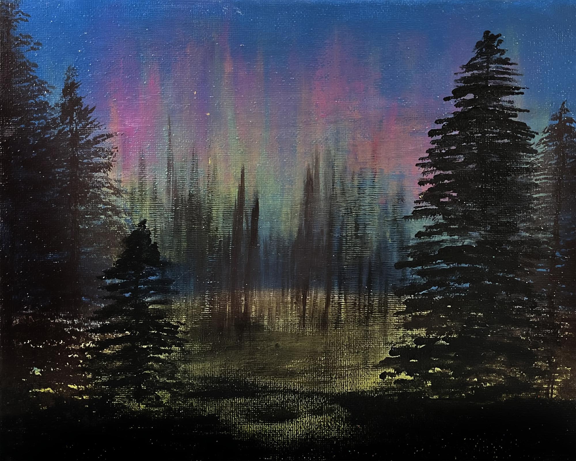 • “Northern Lights” – This dramatic landscape scene captures the beauty of the Northing Lights! A few simple painting techniques is all you need to capture this majestic scene!