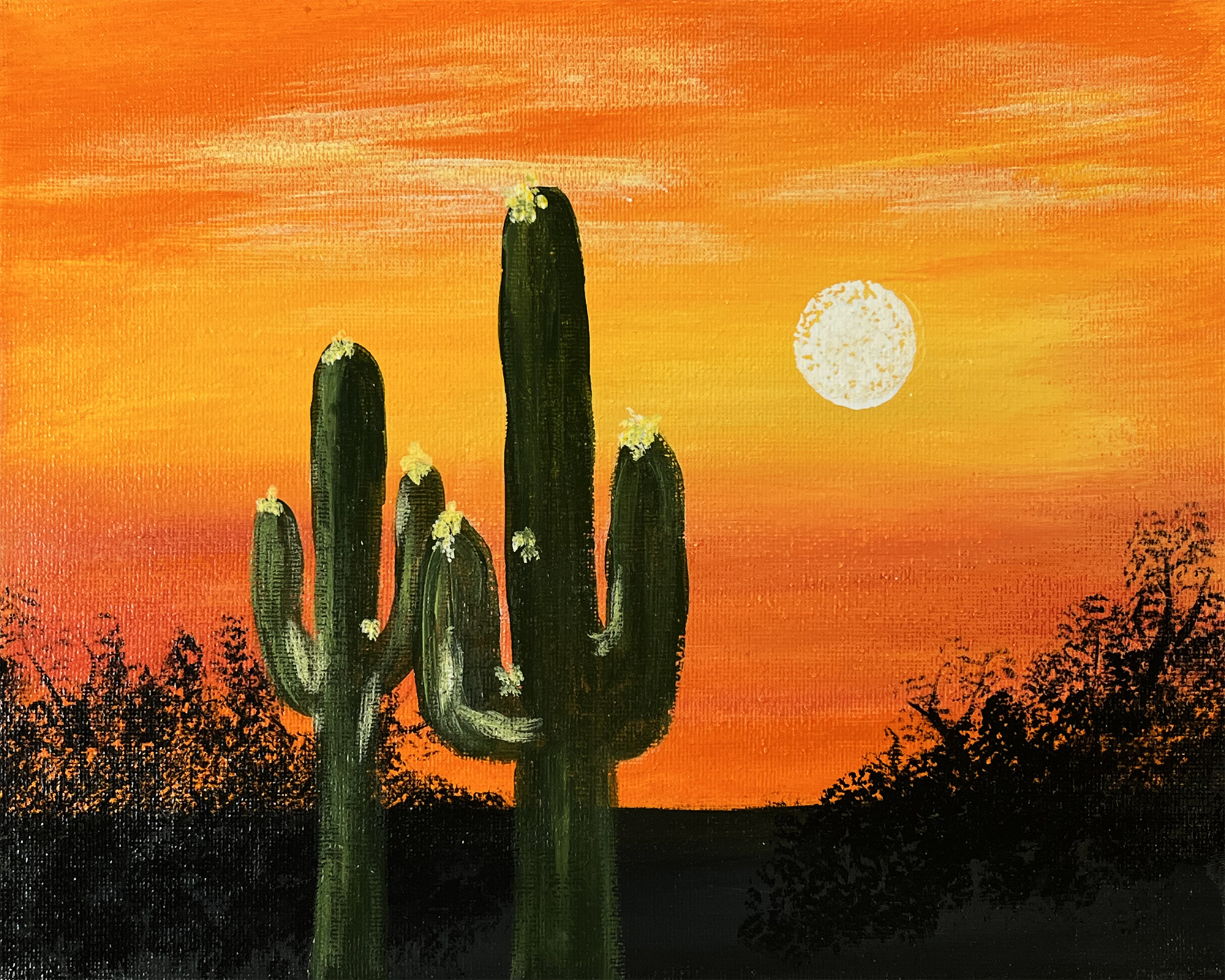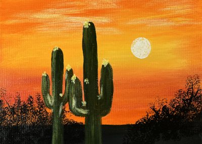 • “Sunset Cactus” – Relax and enjoy as you create this dynamic and colourful sunset with wild cactus!